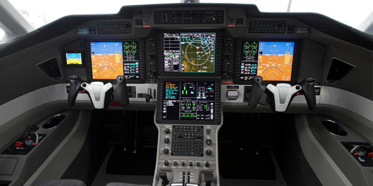 The entirely redesigned flight deck also features PC-24 style ergonomic control yokes.