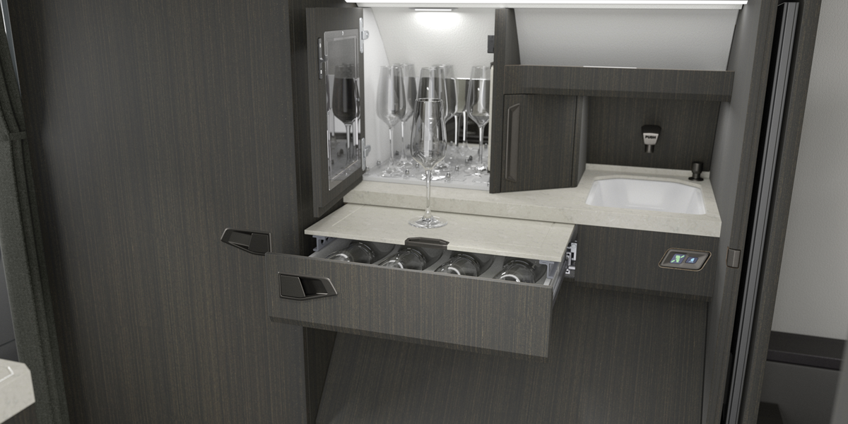 - Welcome Center has been refined to feature optional crystal glass storage, extended working surface, and optimized sink placement